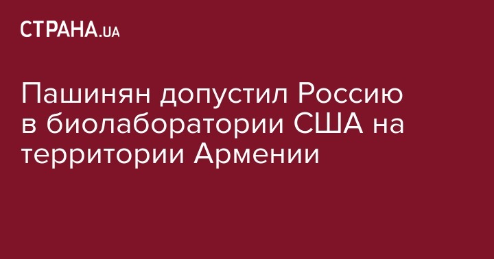 Пашинян допустил Россию в биолаборатории США на территории Армении