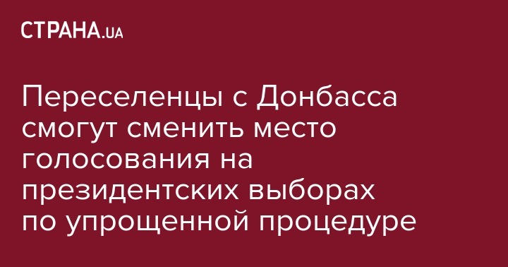 Внутренне перемещенные лица из Донецкой и Луганской областей смогут воспользоваться упрощенной процедурой смены места голосования на президентских и парламентских выборах, а также на всеукраинском референдуме, сообщает пресс-служба Министерства по вопросам временно оккупированных территорий и внутренне перемещенных лиц.