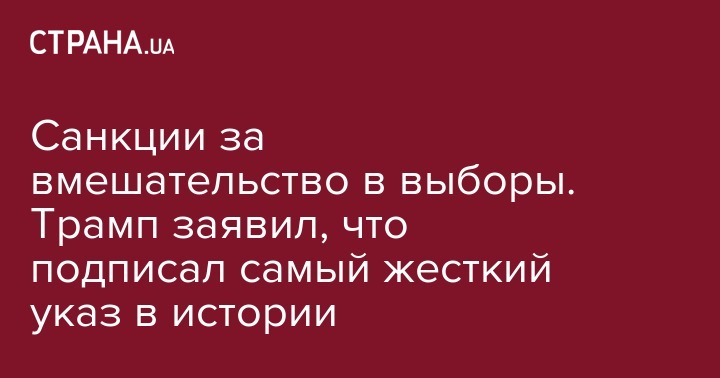 "Подписав этот указ, я добавил еще одну строку в историю введения самых жестких мер на сегодня любым из президентов Соединенных Штатов ради защиты нашей избирательной системы", - заявил Дональд Трамп.