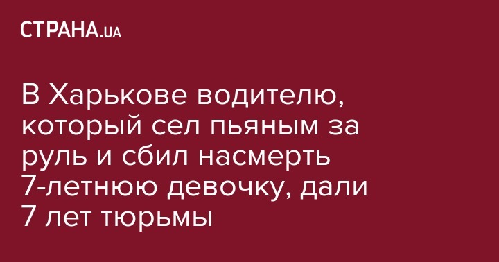 Червонозаводский районный суд Харькова приговорил к 7 годам тюрьмы водителя, который в июне сел пьяным за руль и сбил насмерть 7-летнюю девочку. Об этом сообщает пресс-служба прокуратуры Харьковской области.