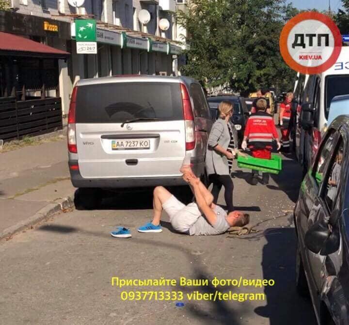 Появились фото с места ДТП на Голосеевском проспекте Киева, где водитель сбил мужчину с ребенком