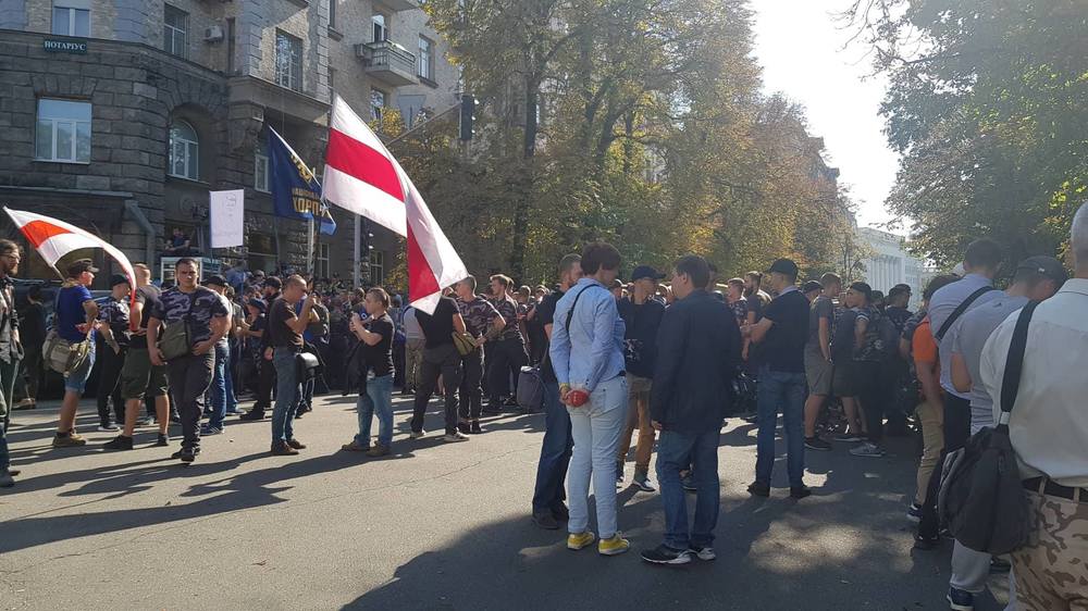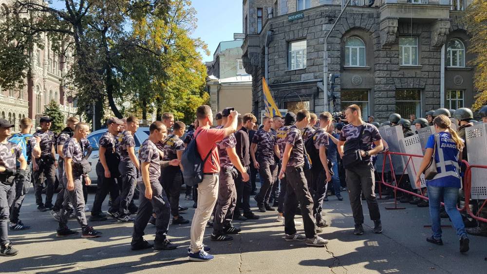 Радикалы выступают за прекращение преследования иностранцев, которые воюют в добровольческих батальонах. Среди организаторов акции - "Азов", "Свобода", "ОУН", "Айдар" и другие организации, имеющие военное крыло.