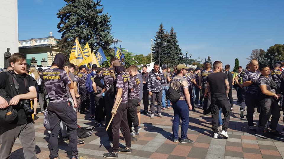 10:30  Пока под парламентом около 300 человек. В основном представители Нацкорпуса. Держат в руках флаги и ведут себя тихо.