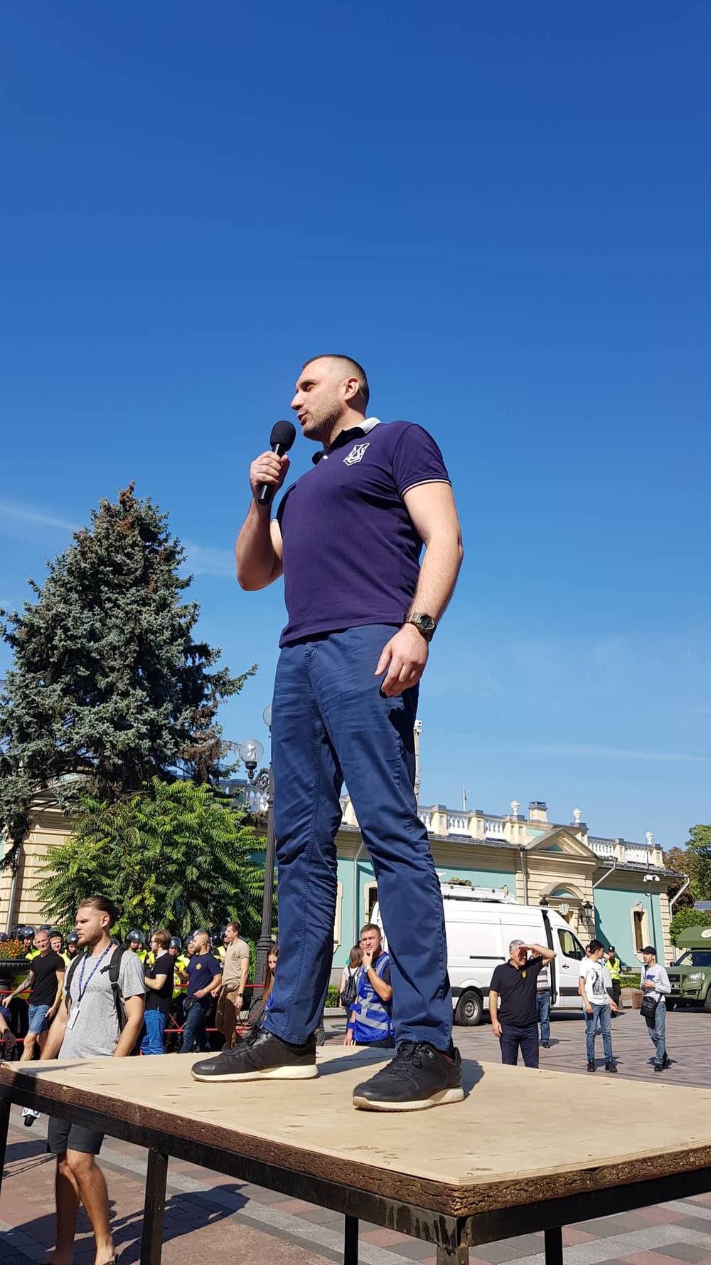 13:18 Митинг возобновился. Слово депутат Олег Петренко (БПП, член "Гражданского корпуса Азов"). Он заявил, что акция будет продолжаться до тех пор, пока они не добьются адекватных результатов.