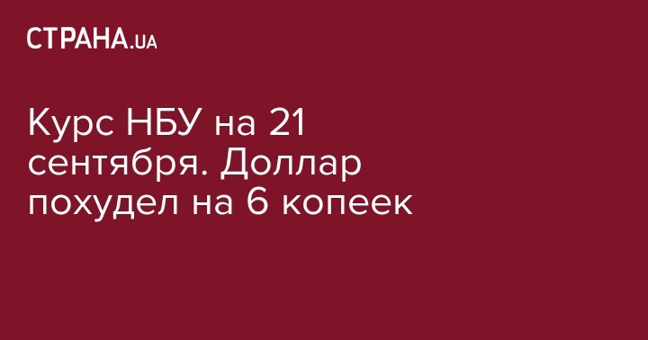 Курс НБУ на 21 сентября. Доллар похудел на 6 копеек