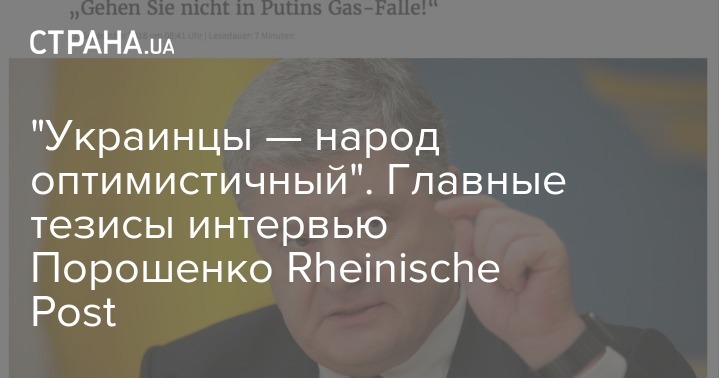 Петр Порошенко дал интервью немецкой газете Rheinische Post. "Страна" перевела материал и предлагает вниманию главные тезисы, озвученные президентом Украины.