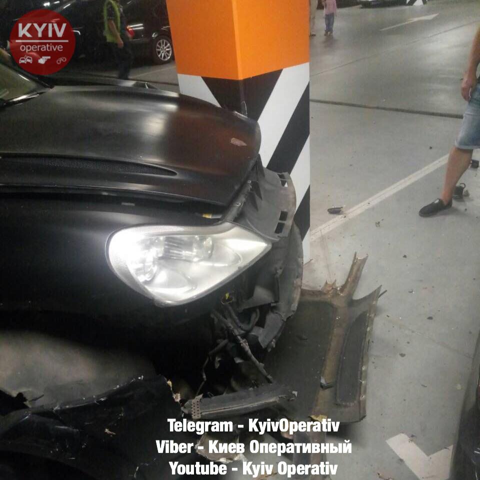 В Киеве, 22 сентября, водитель на Porsche не справился с управлением на парковке возле "Ашана" на улице Драгоманова и влетел в уже припаркованные авто и железобетонную колонну. Об этом сообщает "Киев оперативный" в Facebook.