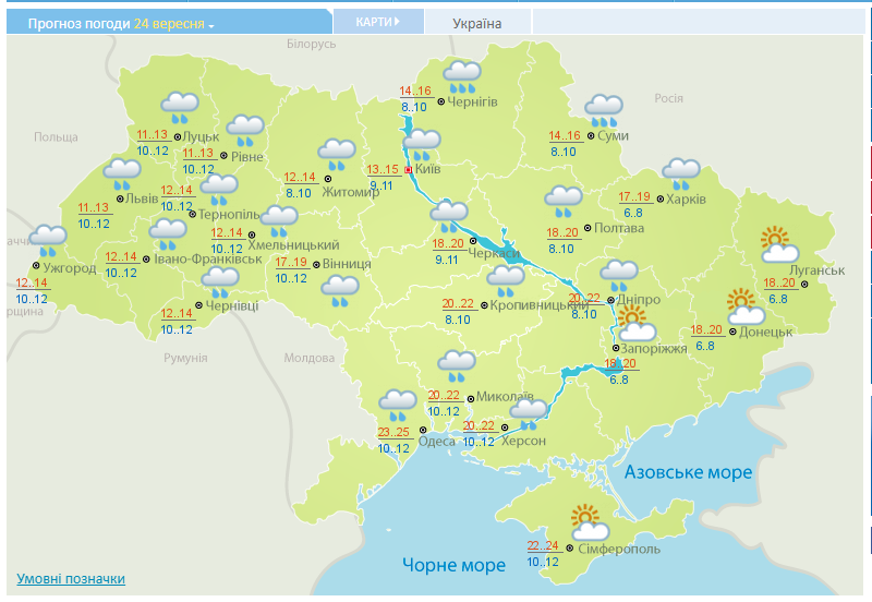 В понедельник, 24 сентября, в Украине ожидается похолодание, которое принесет дожди. Об этом сообщает Укргидрометцентр.