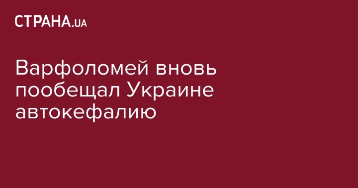 Вселенский патриарх Варфоломей заявил, что Украина получит автокефалию. Об этом сообщает Fanarion.