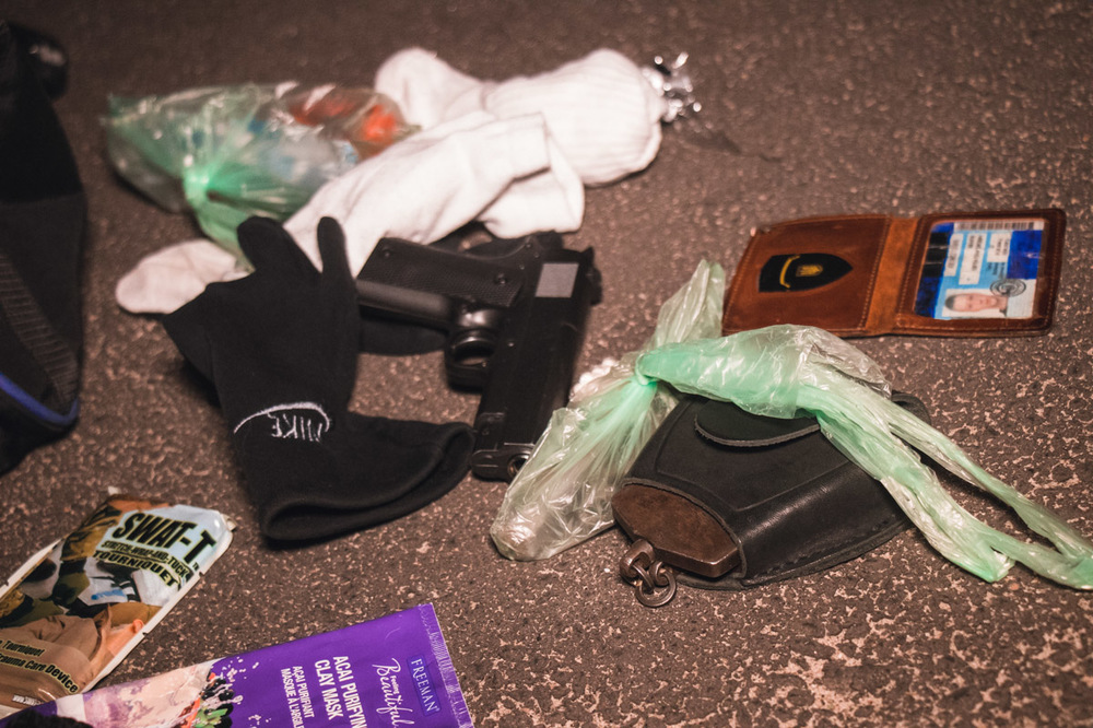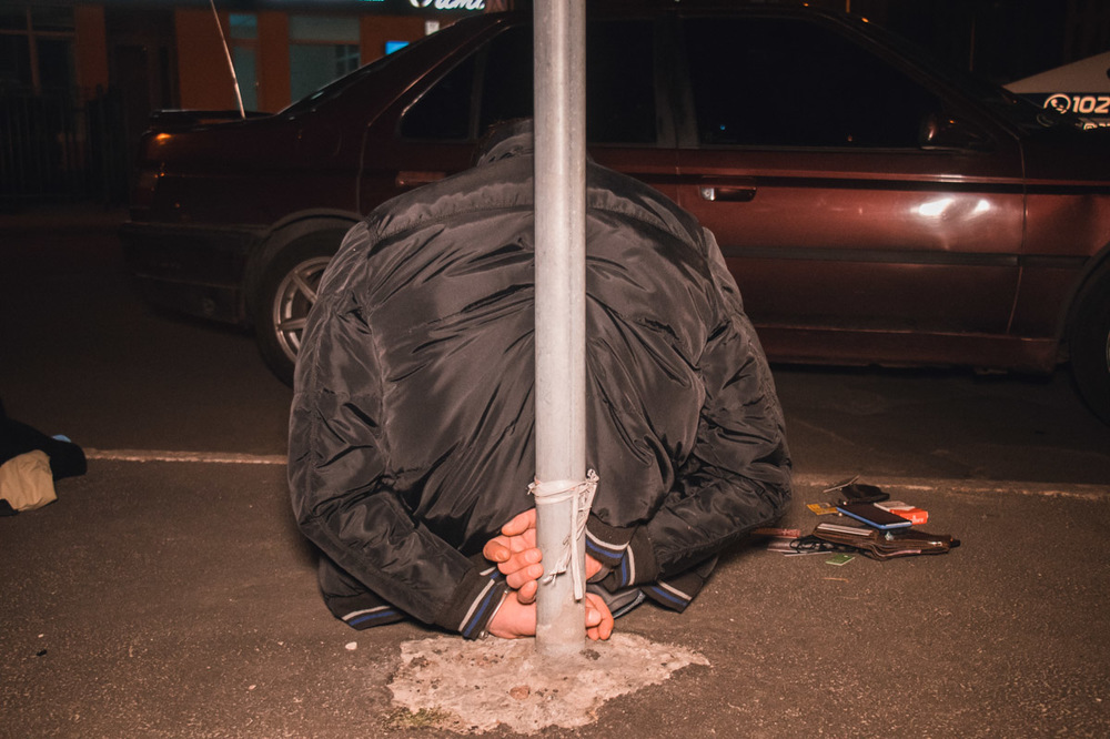 Правоохранителям удалось догнать Peugeot и остановить его. В машине находились двое мужчин. В ходе разбирательств было установлено, что это таксист и пассажир Евгений. При осмотре личных вещей пассажира были обнаружены наручники, предмет похожий на пистолет и гранату.