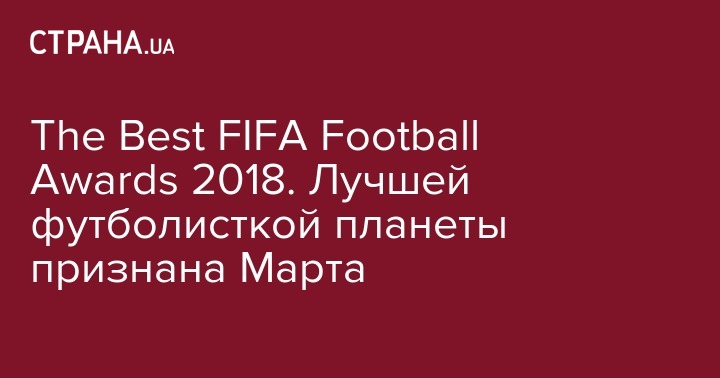 В английском Лондоне на церемонии The Best FIFA Football Awards 2018 лучшей футболисткой мира признана игрок сборной Бразилии - Марта. Она играет за клуб "Орландо Прайд" в Национальной женской футбольной лиге США.