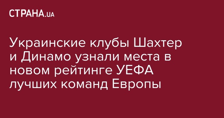 В УЕФА обновили рейтинг клубов по итогам первого раунда группового этапа в Лиге Чемпионов и Лиги Европы. Представители Украины расположились на 10-м и 23-м местах среди всех футбольных команд Европы.