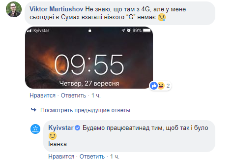 К обеду пользователям в Киеве, которые жаловались на проблемы с мобильным интернетом, "Киевстар" стал присылать такие сообщения: "Приветствую. В данный момент, действительно, есть сложности с выходом в интернет. Рекомендую перезагрузить устройство (именно перезагрузить а не выбрать режим "Полета"). Наши специалисты занимаются решением этого вопроса. Извините за временные неудобства. Ориентировочно 27.09.2018 до 15:00".