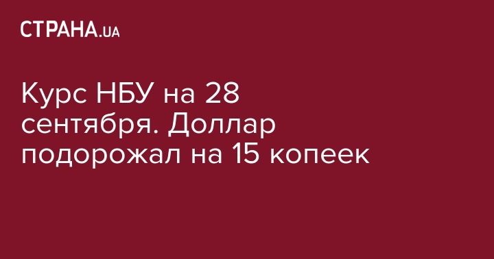 Курс НБУ на 28 сентября. Доллар подорожал на 15 копеек