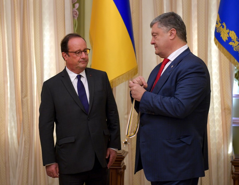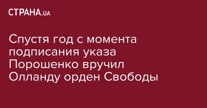 Спустя год с момента подписания указа Порошенко вручил Олланду орден Свободы