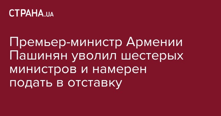 Президент Армении Армен Саркисян поддержал предложение премьер-министра Никола Пашиняна и отправил в отставку шестерых министров: сельского хозяйства; энергетических инфраструктур и природных ресурсов; экономического развития и инвестиций; транспорта, связи и информационных технологий; спорта и чрезвычайных ситуаций. Об этом сообщается на сайте главы государства, передает "Интерфакс".