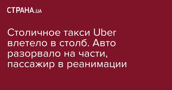 Столичное такси Uber влетело в столб. Авто разорвало на части, пассажир в реанимации