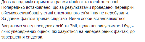 Пострадавшие гражданские лица были госпитализированы. По предварительной информации, военнослужащие в состоянии алкогольного опьянения не находились. По данному факту продолжается следствие, правоохранители устанавливают виновных.
