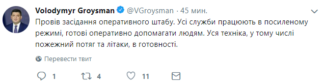 Гройсман также поручил Государственной службе по чрезвычайным ситуациям и местной власти быть постоянно на контакте с людьми, организовать места длительного размещения и быть готовыми начать отопительный сезон в Черниговской области.