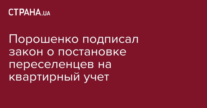 Президент Петр Порошенко подписал закон, предоставляющий право постановки на социальный квартирный учет внутренне перемещенных лиц. Об этом говорится в сообщении пресс-службы Президента.