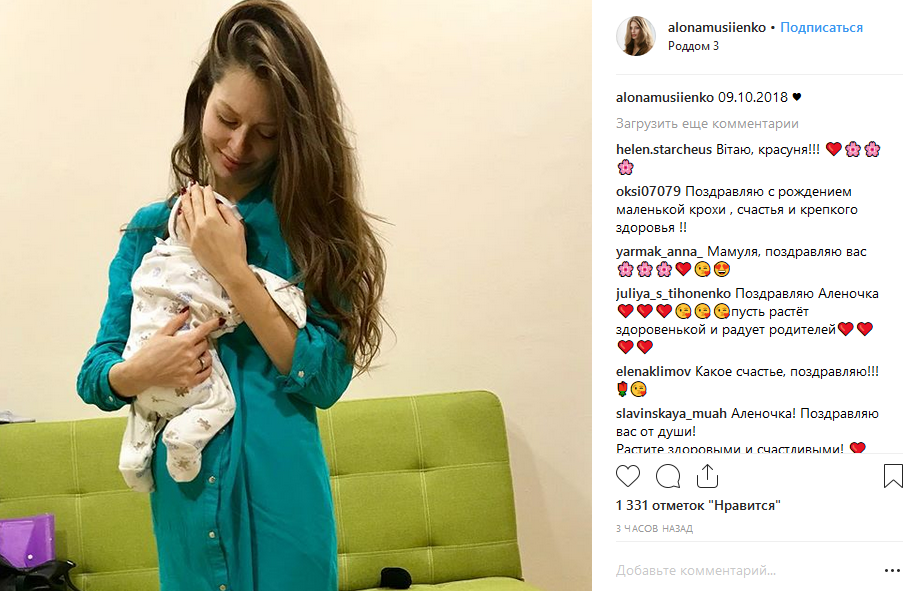 27-летняя украинская модель, актриса и телеведущая Алена Мусиенко родила первенца от своего мужа Максима Омеляна. Брат министра инфраструктуры женился в августе прошлого года, и вот семья дождалась пополнения. Артистка родила сына. Радостную новость новоиспеченная мама рассказала в своем Instagram.