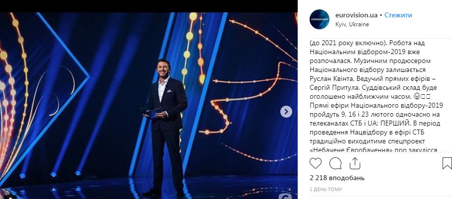 "Работа над Национальным отбором-2019 уже началась. Музыкальным продюсером Национального отбора остается Руслан Квинта. Ведущий прямых эфиров - Сергей Притула. Судейский состав будет объявлен в ближайшее время. Прямые эфиры Национального отбора-2019 пройдут 9, 16 и 23 февраля", - сообщили в пресс-службе.