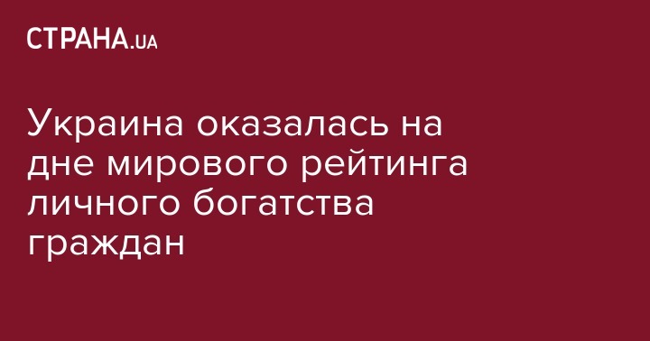Украина оказалась на дне мирового рейтинга личного богатства граждан