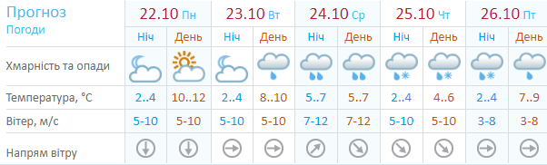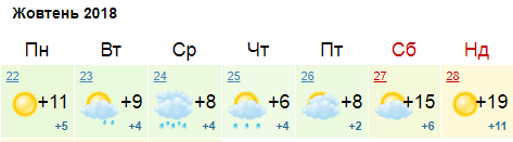 Ресурс Мeteoprog.ua дает похожий прогноз, но по данным этого ресурса самые холодные дни недели четверг и пятница, а среди недели будет идти дождь, но не обильный и без снега. На выходных +13...+19, пасмурно.