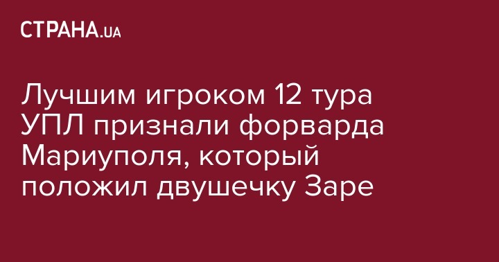 Лучшим игроком 12 тура УПЛ признали форварда Мариуполя, который положил двушечку Заре
