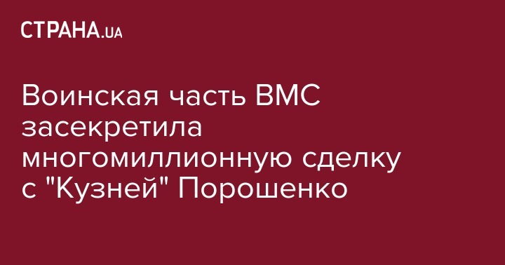 Воинская часть военно-морских сил Украины заявила о секретности многомиллионной сделки по ремонту корабельных двигателей, заключенной в сентябре с заводом президента Петра Порошенко "Кузня на Рыбальском". Об этом сообщает Глеб Каневский, глава экспертной организации StateWatch со ссылкой на письмо военных, пишет ЭП.