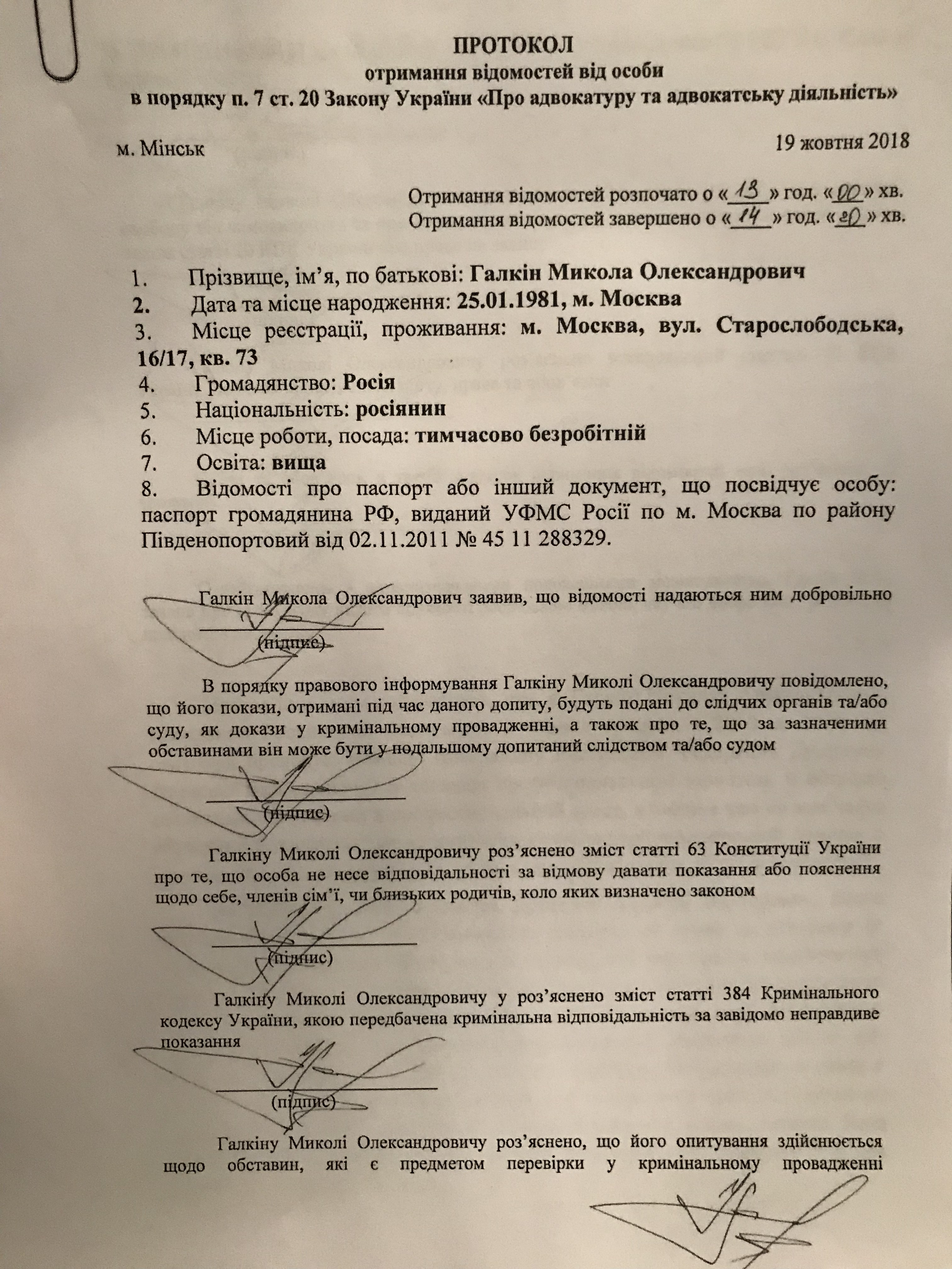 Пояснения, которые дал российский адвокат Николай Галкин. С ним Алексей Душутин пытался провернуть трюк, ранее удавшийся ему с Тимофеем Нагорным, Владимиром Филимоновым и Георгием Левчуком, источник фото: "Страна"