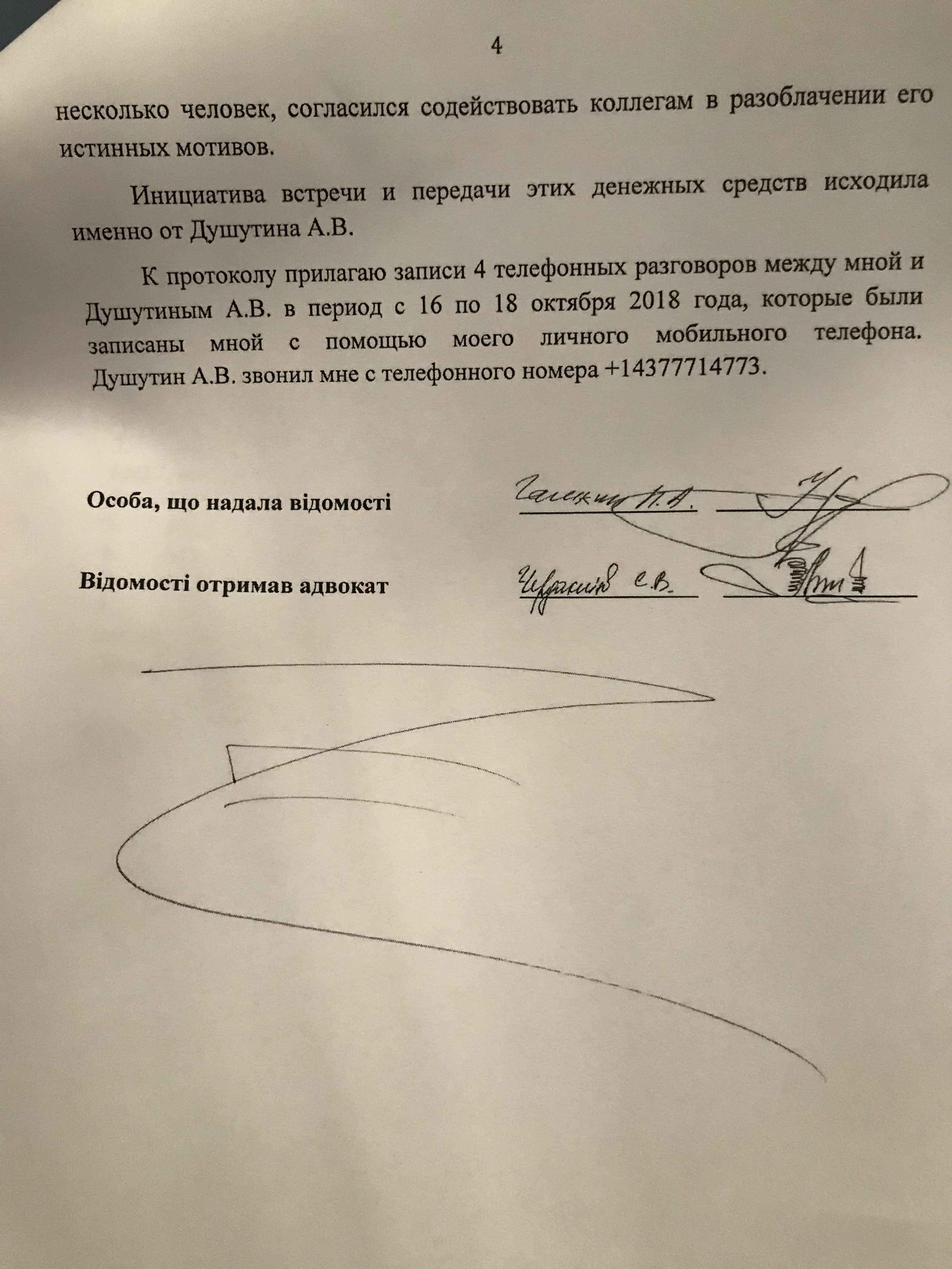В подтверждение своих слов Галкин предоставил аудиозаписи четырех телефонных разговора, состоявшихся между ним и Душутиным в промежутке с 16 по 18 октября. Из них следует, что бизнесмен активно заманивал адвоката конкретно в Киев, где якобы хотел передать ему деньги для взяток российским силовикам. Но Галкин под надуманными предлогами избежал поездки в Украину, благодаря чему ему удалось остаться на свободе, в отличие от других фигурантов провокации СБУ и Душутина - адвокатов Георгия Левчука, Владимира Филимонова и руководителя "Фонда волонтеров Украины" Тимофея Нагорного.
