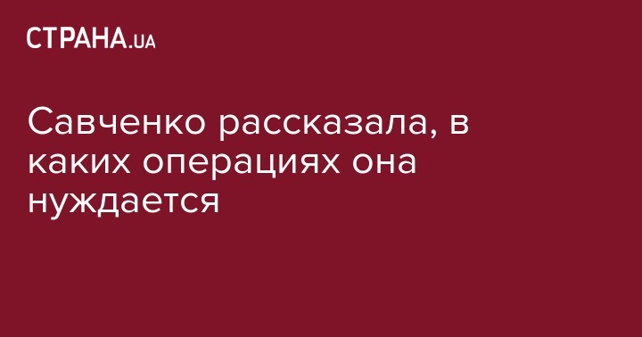 "Мне действительно нужно две операции, это старая травма, это из армии, в колене... Одна на мениске, одна из-за разрыва крестовидной связки", – заявила Савченко. Нардеп утверждает, что из-за нехватки движений в СИЗО у нее началось воспаление.