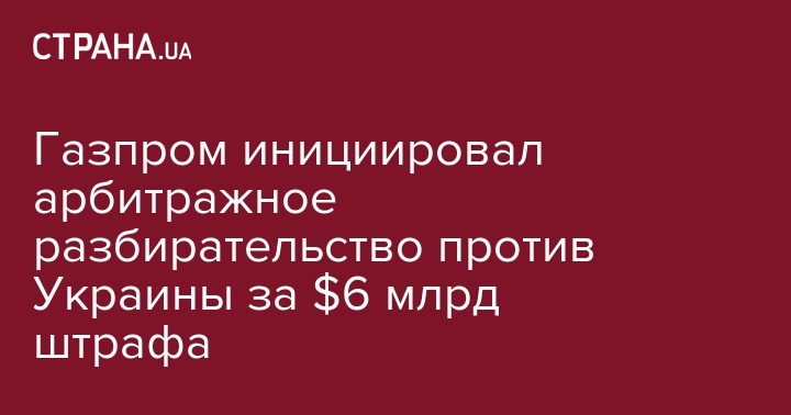 "Газпром согласно Арбитражному регламенту ЮНСИТРАЛ инициировал арбитражное разбирательство против Украины с целью защиты своих инвестиций на ее территории в связи с тем, что Украина в лице Антимонопольного комитета наложила на Газпром необоснованный и несправедливый штраф в размере, превышающем $6 млрд (включая пеню) за якобы злоупотребление монопольным положением на рынке транзита газа Украины", - говорится в заявлении "Газпрома".