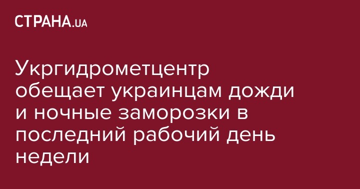 Укргидрометцентр обещает украинцам дожди и ночные заморозки в последний рабочий день недели