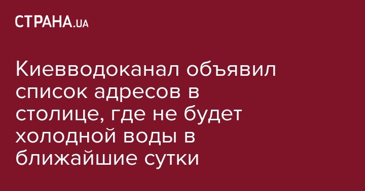 Сообщается, что водоснабжение будет отсутствовать по следующим адресам:
