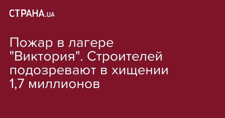 Прокуратура Одесской области сообщила о подозрении директору строительной фирмы в хищении 1,7 миллионов гривен при реконструкции детского лагеря "Виктория" в Одесской области, где погибли две девочки. Об этом сообщает пресс-служба ведомства.