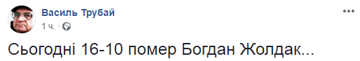 "Сегодня 16:10 умер Богдан Жолдак...", - написал он.