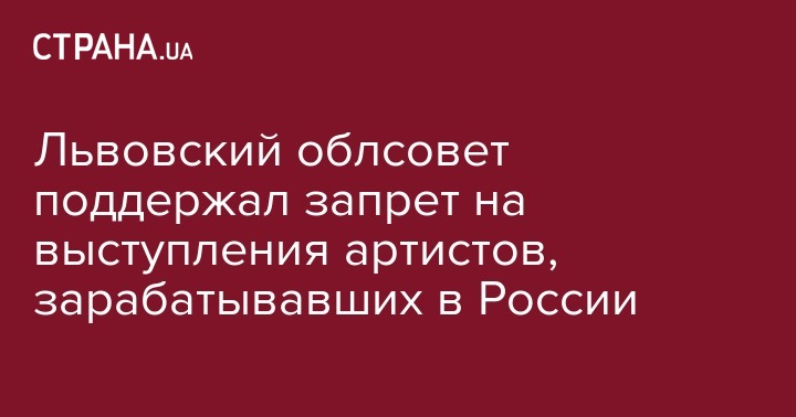 "Запретить проведение во Львовской области концертно-развлекательных мероприятий представителям украинского и иностранного шоу-бизнеса, которые принимали участие в концертах, теле и радиопередачах, иных развлекательных мероприятиях на территории РФ, в аннексированном Крыму и оккупированных районах Донецкой и Луганской областей во время фактической российско-украинской войны", - указано в тексте решения Львовского областного совета.