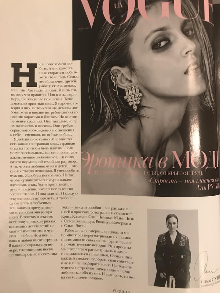 "И немного про Vogue Ukraine.Надеюсь, появится третейский судья и всех рассудит. С Ольгой Сушко мы знакомы благодаря профессиональным вопросам, и точно знаю, что делает редакция большое дело. Да, оступилась она, это и признает. Неправа, но и это признает.