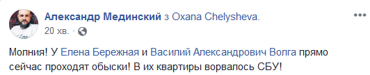 "В квартиру тарабанят СБУ!", - сказала Елена Бережная.