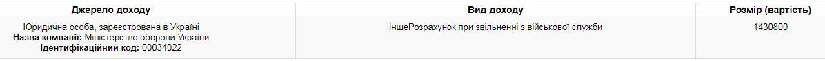 При увольнении с воинской службы министр обороны Степана Полторак получил 1,4 млн. гривен расчетных средств. Об этом сказано в изменениях к декларации Полторака, поданных сегодня, 6 ноября.