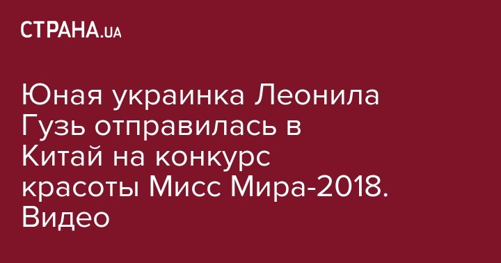 Юная украинка Леонила Гузь отправилась в Китай на конкурс красоты Мисс Мира-2018. Видео