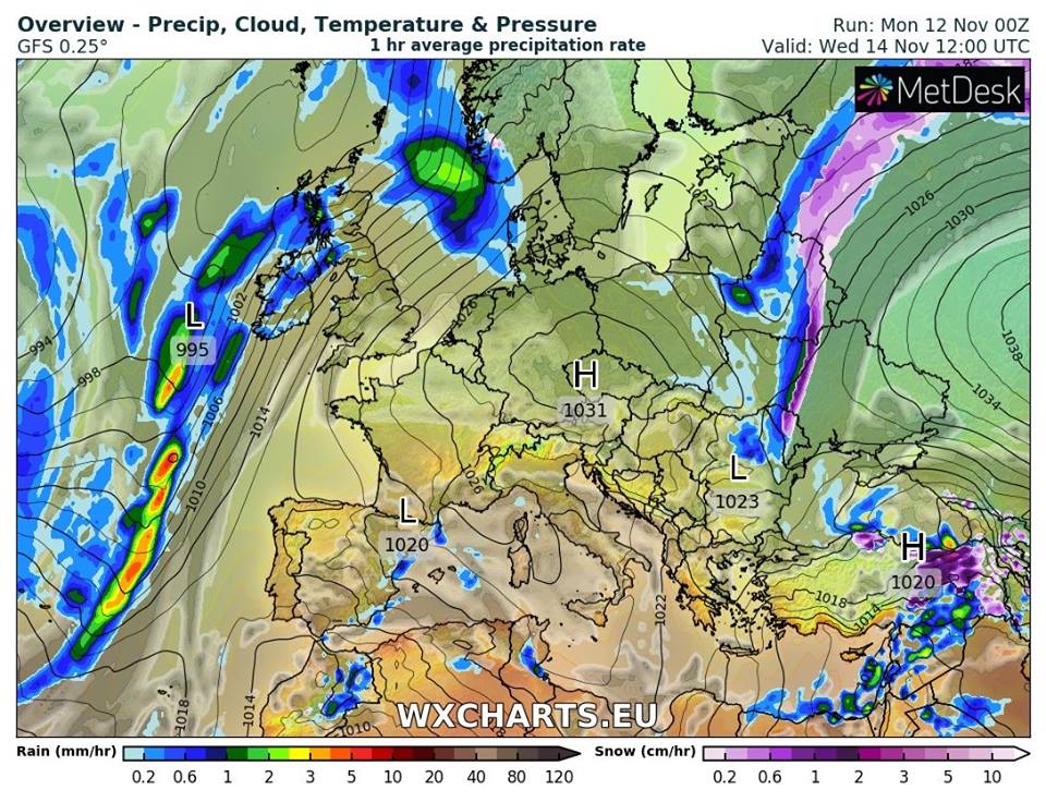В среду, 14 ноября, с запада придет атмосферный фронт и принесет в наши западные области преимущественно дождь, а в северном регионе и местами в центре Украины ожидается мокрый снег.