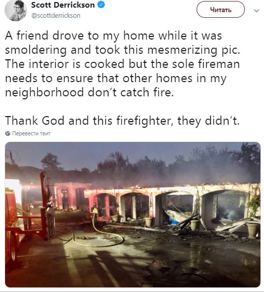 Режиссер "Доктора Стренджа" Скотт Дерриксон запостил в Twitter фотографию своего дома, который полностью сгорел во время пожара. Он поблагодарил всех, кто решил поддержать его, и заявил, что сам не сильно волнуется из-за ситуации, хотя буквально "потерял все".