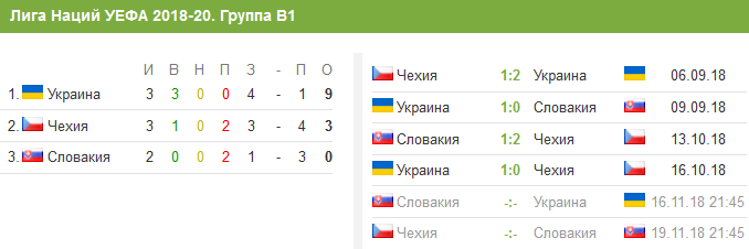 Положение в группе В1 Лиги наций УЕФА