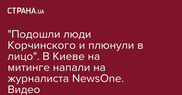 "На журналиста NewsOne напали после того, как к нему подошла жена Корчинского и попросила "по-хорошему уйти с митинга и не провоцировать парней". Сразу после этого журналисту плюнули в лицо", - сказано в сообщении.