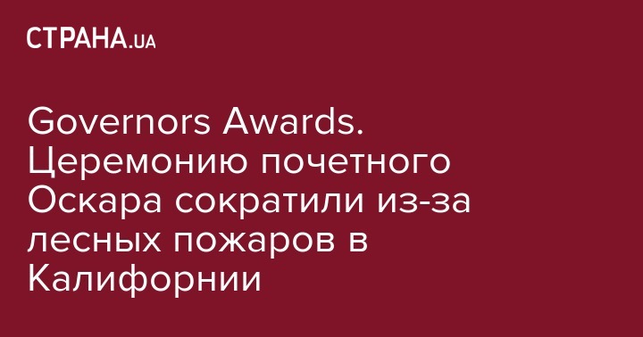 Governors Awards. Церемонию почетного Оскара сократили из-за лесных пожаров в Калифорнии