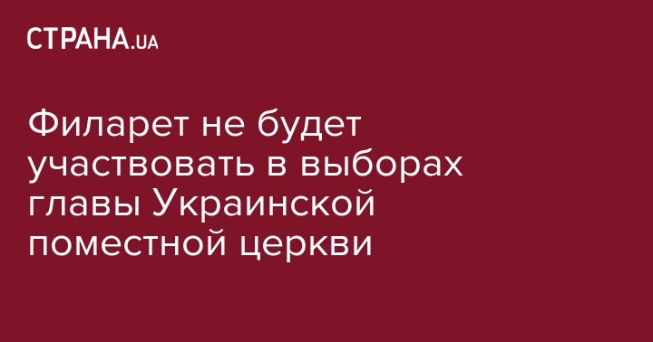 Предстоятель неканонической УПЦ КП Филарет заявил, что не будет выдвигать свою кандидатуру на пост главы Украинской поместной церкви. Вместо себя он предложил кандидатуру митрополита Епифания.