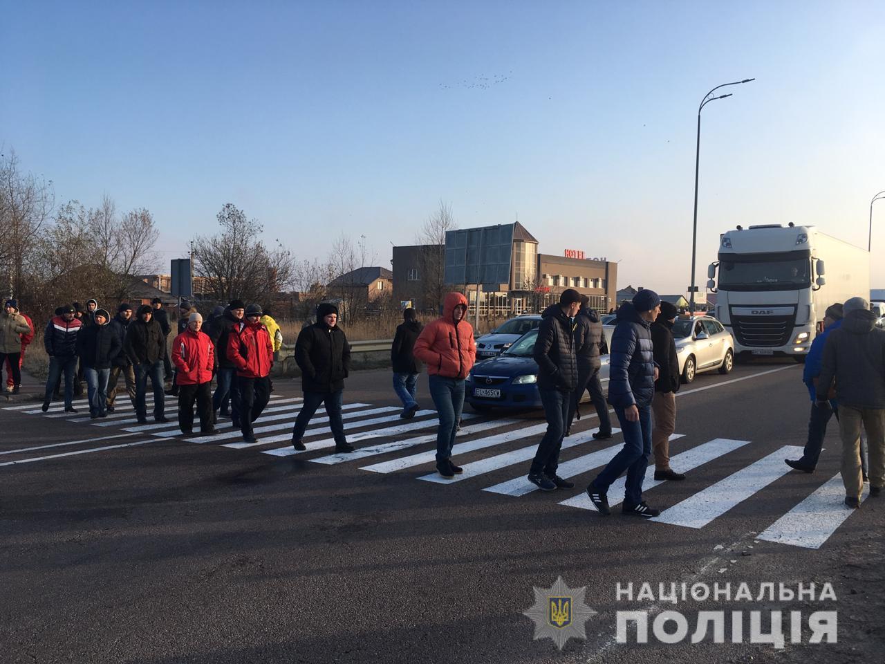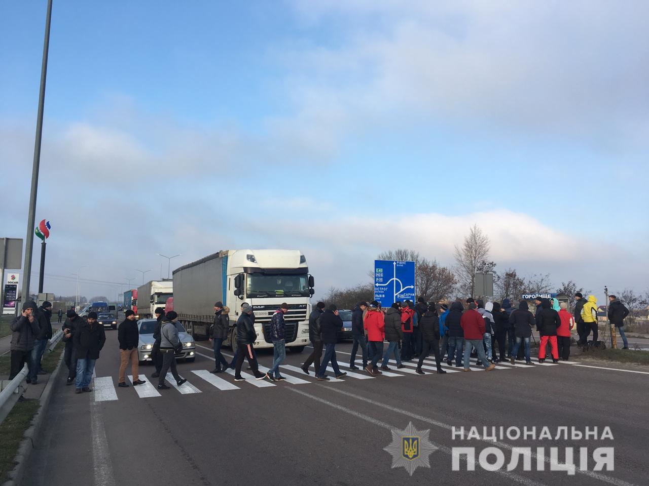 Инцидент произошел около 09:00 близ села Белая Криница. Здесь более 20 человек перекрыли автодорогу "Киев - Чоп", они непрерывно двигались по пешеходному переходу. Как отметили в полиции, участники акции припарковали транспортные средства на проезжей части с нарушением правил дорожного движения.